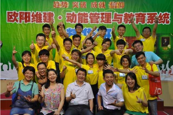 面對這樣的“大家”,我不敢眨眼,認認真真,戰(zhàn)戰(zhàn)兢兢地聽歐爸說的每一句話。散會后,大皖姐說我們真的是太幸運了,剛來就有幸能夠上歐爸演講之道的三天課程。當時,我也覺得我很幸運,來的第二天就見到了歐爸,親眼目睹了歐爸的風采,心里頓時從對歐爸陌生到接受到喜歡并且真正的崇拜。三天下來,感受到最多的是歐爸的親力親為,歐爸的拼命,歐爸的感動。在“信仰成就未來--歐陽維建動能演講暨苦樂營父母大學”開課的最后一天晚上,能量場里的所有人都為之感動。