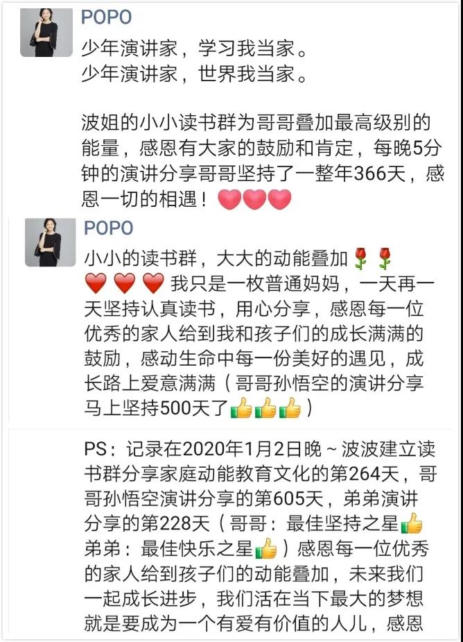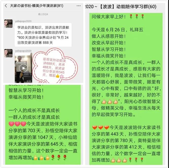 (義烏精英薈薈長(zhǎng)波波老師每天都在群里打卡兒子陳奕豪、陳奕杰的演講學(xué)習(xí)堅(jiān)持天數(shù))